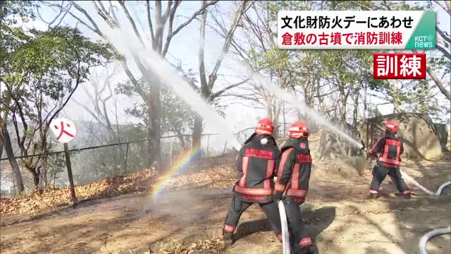 文化財防火デーに合わせて 県指定史跡の古墳で消防訓練